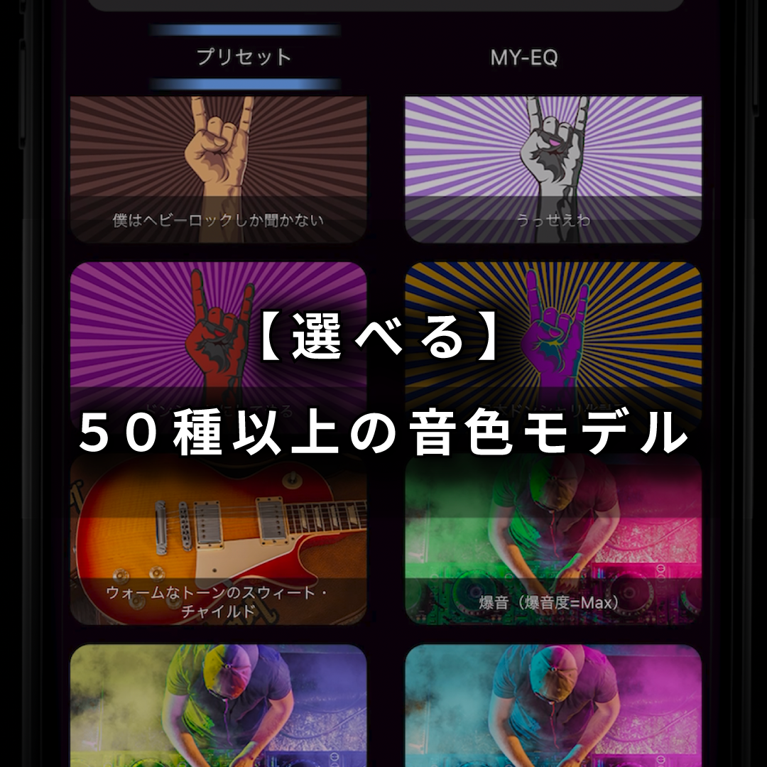 例: 8時間連続再生可能な音色設定もあれば、短時間でバッテリーを使い切るほどにハイゲインなサウンドをメイクする事も可能。